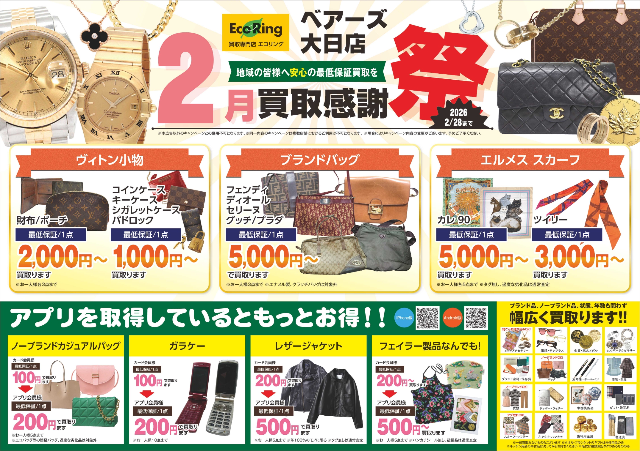 ✨📣 2月 買取感謝祭 📣✨ ~エコリング ベアーズ大日店~